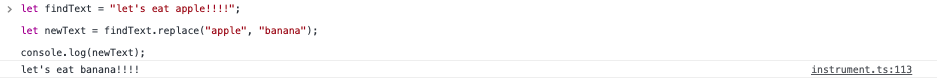 let newText = findText.replace("apple", "banana"); // 1. 바꾸고자하는 문자 2. 새롭게 넣고싶은 문자
